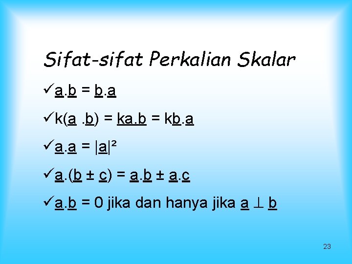 Sifat Perkalian Skalar Vektor / Ppt Aljabar Linear Dan Matriks Powerpoint Presentation Free Download Id 4242529 / U + v dan av berada di v untuk .